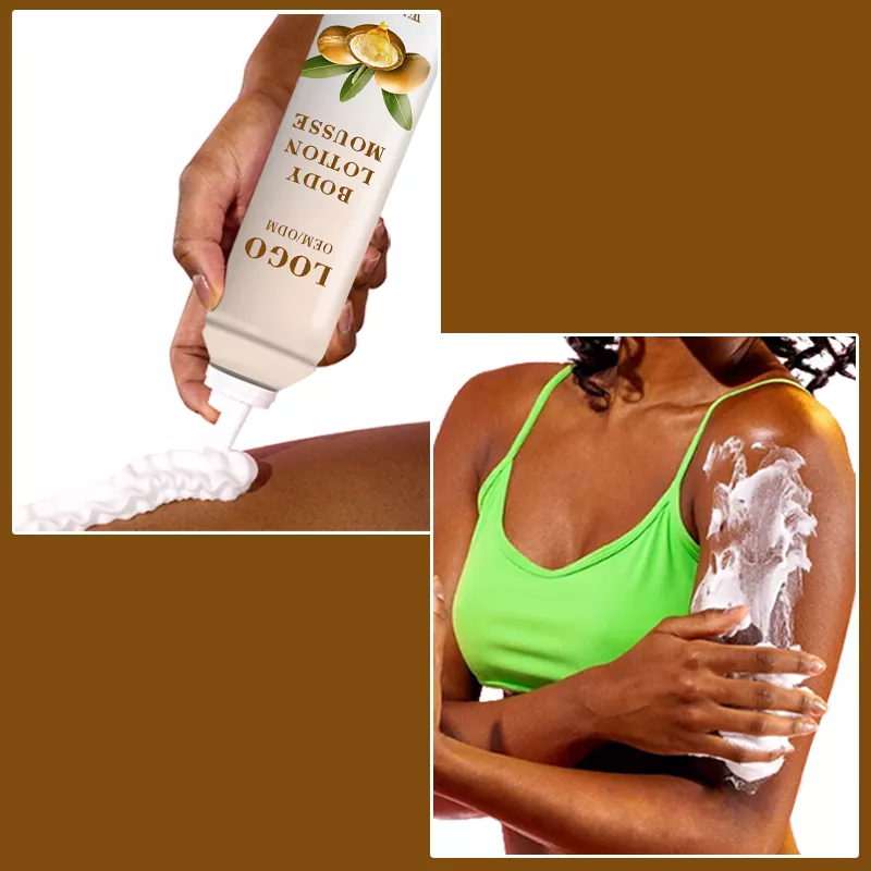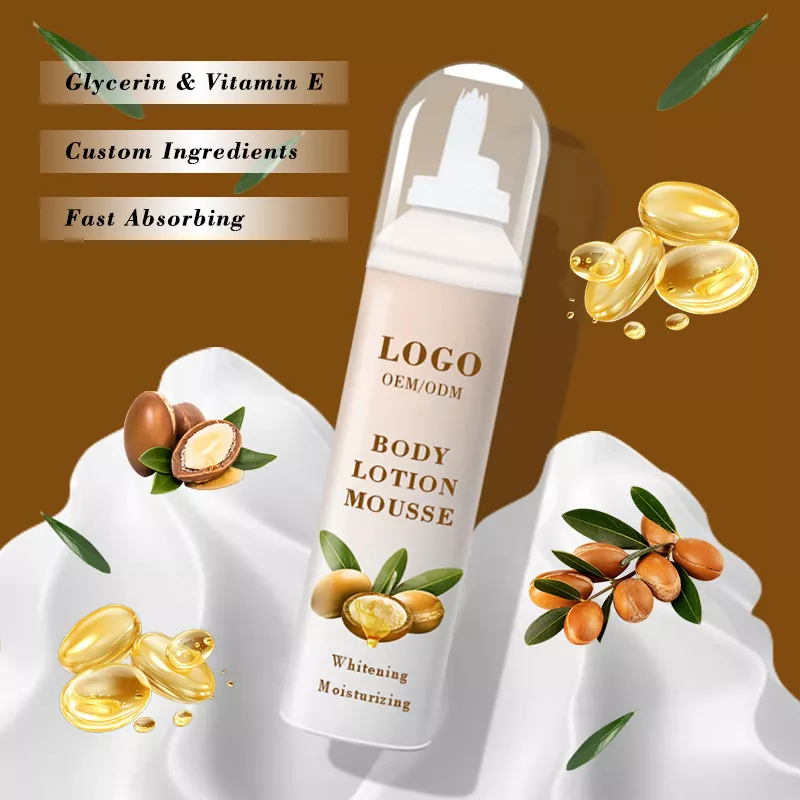 Wilson воблачны асвятляльны ласьён для гідратацыі Body Mousse-гэта працяглы ўвільгатняе крэм, які можна паглынаць у арганізм. Наш мус пастаўляецца ў аэразольнай форме ў алюмініевым банку, які пры націску вырабляе багатую пену. У параўнанні з цяжкім і ліпкім пачуццём традыцыйных ласьёнаў, наша цела мус прыносіць лёгкі штрых, як воблака мяккага і шчыльнага. Акрамя таго, у нас ёсць мноства прэпаратаў на выбар, напрыклад, вы можаце дадаць у формулу, якія змяшчаюць высокаэфектыўныя ўвільгатняючыя экстракты, такія як некалькі гіалуроновых кіслаты, натуральныя раслінныя экстракты і г.д., якія могуць зрабіць мікраструктуру пены больш выклікае ўздзеянне інгрэдыентаў непасрэдна пад скурай, так што ён мае інтэнсіўную гідратацыю і блакіроўку, працяглую выкладку на скуру. Скура ўвільгатняецца знутры.