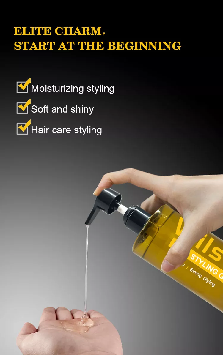 Wilson Men's Ultra Smooth Seamless Hair Styling Gel касметыка адносіцца да кладкі валасоў і мадыфікуючага эфекту касметыкі, распылення або нанясення на валасы, выпарэння растваральніка і высушвання на валасах для адукацыі празрыстай плёнкі, так што валакно валасоў зацвярдзее і падтрымлівае форму, каб задаволіць патрэбы розных прычосак.